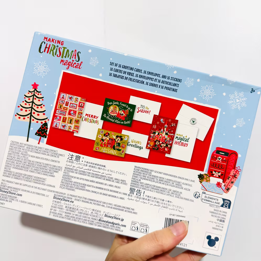 Set de 16 postales, 16 sobres y 16 pegatinas de Navidad de Disneyland París